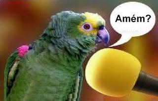 O papagaio olha para a igreja, levanta uma asinha e diz: – Irmãos!!! Vamos orar que o inimigo já começou a se manifestar…